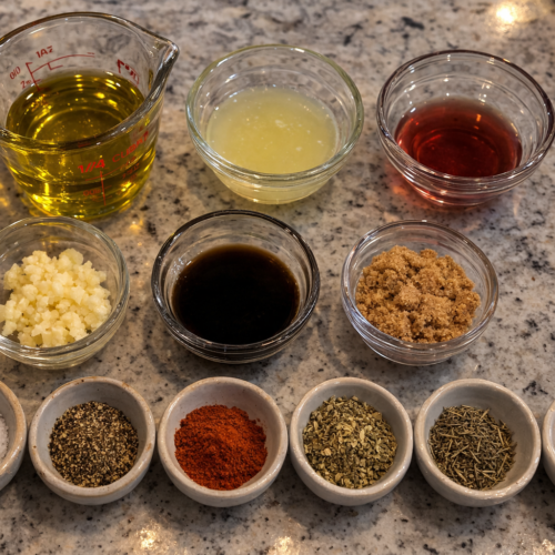 This bold and balanced lamb marinade combines olive oil, lemon juice, vinegar, garlic, herbs, and warm spices to enhance lamb’s natural richness without overpowering it. Perfect for chops, leg of lamb, shoulder, or kebabs.